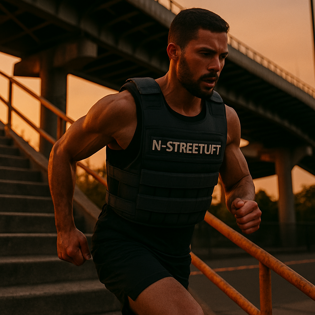 Tactical Load for Street Performance. The N-Streetlift vest balances weight with movement freedom. Adjustable in 2.5 lb increments up to 45 lbs, this vest features reinforced mesh for breathability and front/rear MOLLE webbing for modular accessories. Whether you’re on stairs, push-ups, or box jumps, the even load distribution protects form and boosts output. Includes: 18 iron plates + storage case. S/M/L sizes available. One year warranty.